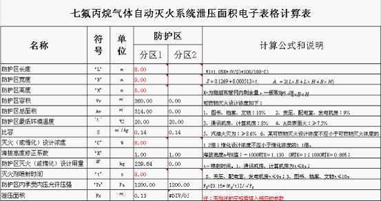 3.3.1 七氟丙烷氣體滅火系統(tǒng)泄壓面積電子表格計算表
