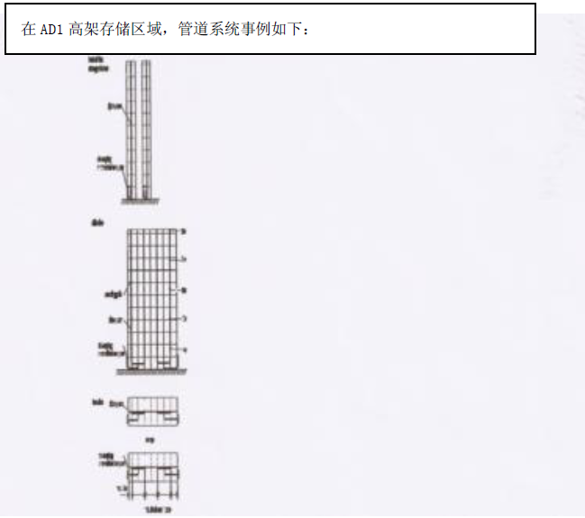 現(xiàn)代化高架倉(cāng)庫(kù)中需要安裝火警探測(cè)系統(tǒng)。 建筑物的基本存儲(chǔ)面積為 15,400㎡, 存儲(chǔ)貨架高 28m。 建筑物包括三個(gè)消防區(qū): 兩個(gè)約為 5,800 ㎡,一個(gè)約