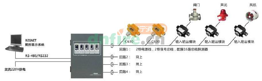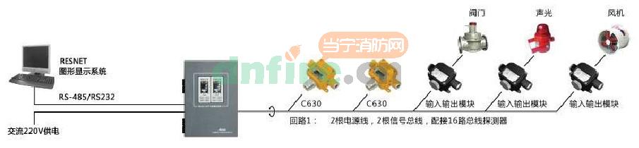 圖4、M100氣體探測系統(tǒng)連接示意圖(總線系統(tǒng))