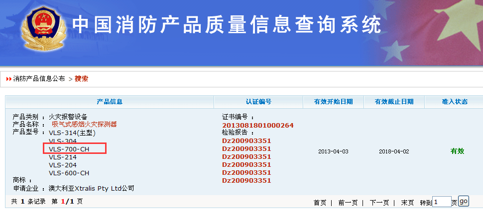 中國消防產(chǎn)品信息網(wǎng)查詢結(jié)果