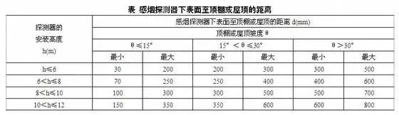 1.11當(dāng)屋頂有熱屏障時(shí),感煙探測(cè)器下表面至頂棚或屋頂?shù)木嚯x,應(yīng)符合下表的規(guī)定。