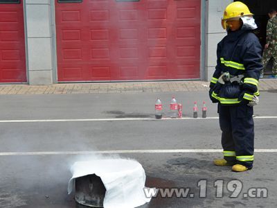 那么用可樂滅油火會(huì)怎樣呢?隨后,消防隊(duì)員又找來油盆,將油盆底部放了一些水后,又倒入了一些汽油。消防隊(duì)員點(diǎn)燃油盆,頓時(shí)火苗躥出。穿好防護(hù)服的消防隊(duì)員再次拿起一大瓶可樂,擰開瓶蓋按住瓶口晃動(dòng)幾下,對(duì)著油盆噴出可樂。此時(shí)火不僅沒有被滅掉,反而有火苗還向上躥。隨后,消防隊(duì)員利用滅火毯對(duì)油盆進(jìn)行覆蓋,不一會(huì)兒,火焰熄滅。