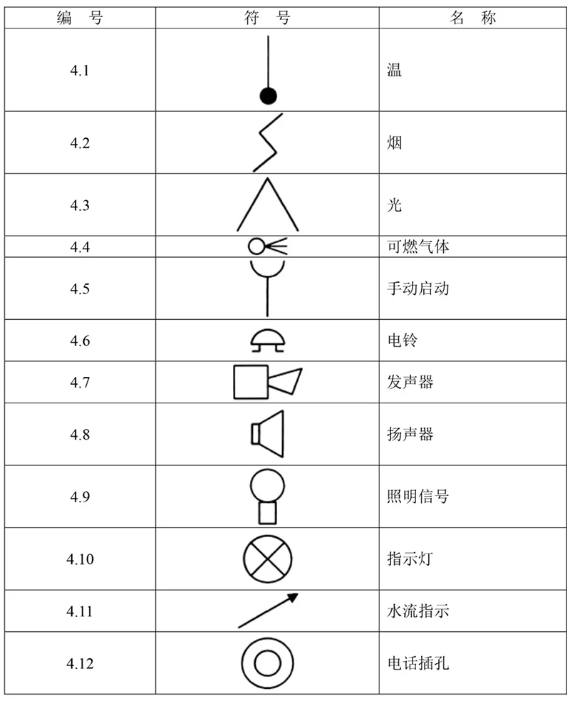 本文中規(guī)定了表示火災(zāi)報(bào)警設(shè)備的基本符號、輔助符號、附加文字符號和獨(dú)立圖形符號。