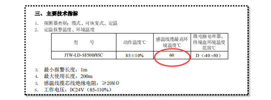 1、環(huán)境溫度超過感溫電纜不動(dòng)作溫度。不同類型的感溫電纜有不同的不動(dòng)作溫度,環(huán)境溫度超出這個(gè)溫度會(huì)導(dǎo)致誤報(bào)的發(fā)生。以青島中陽感溫電纜JTW-LD-SF500/85C為例,其不動(dòng)作溫度為60℃,超出這個(gè)溫度則可能發(fā)生誤報(bào)警。