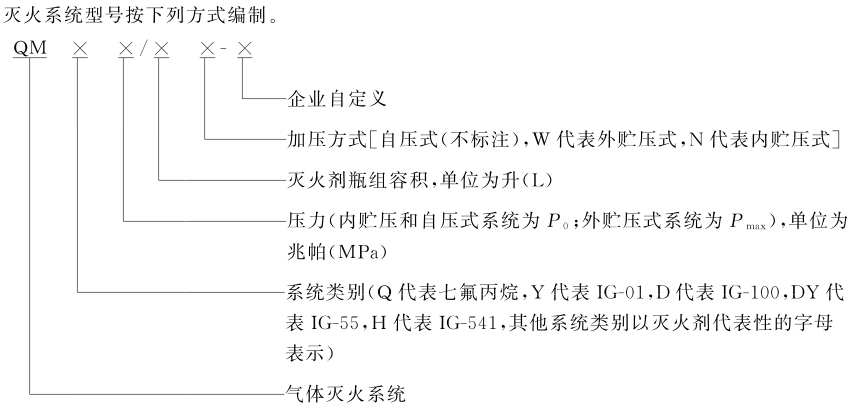 一、滅火系統(tǒng)型號編制方法