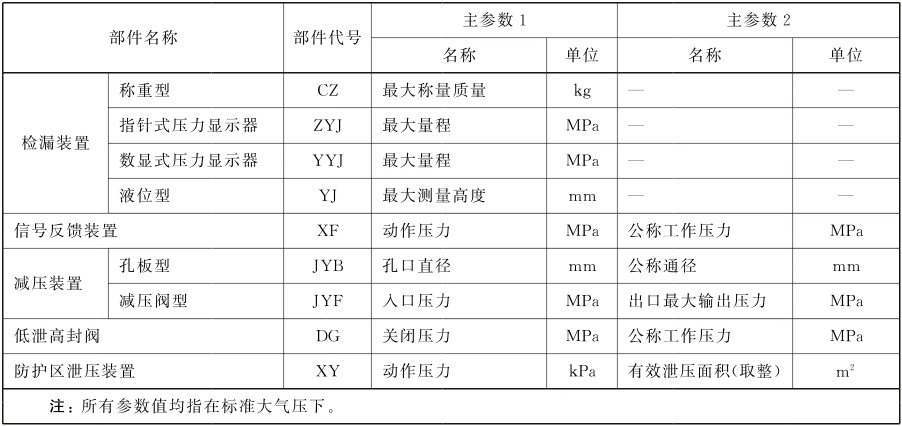 表A.1部件代號和主參數(shù)
