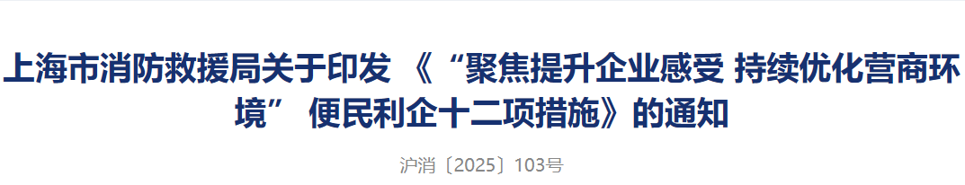 為貫徹落實(shí)《上海市聚焦提升企業(yè)感受持續(xù)打造國(guó)際一流營(yíng)商環(huán)境行動(dòng)方案》,以高水平消防安全服務(wù)保障經(jīng)濟(jì)社會(huì)高質(zhì)量發(fā)展,助力上海持續(xù)打造市場(chǎng)化、法治化、國(guó)際化一流營(yíng)商環(huán)境,上海市消防救援局在前期試點(diǎn)的基礎(chǔ)上,提出便民利企十二項(xiàng)措施。