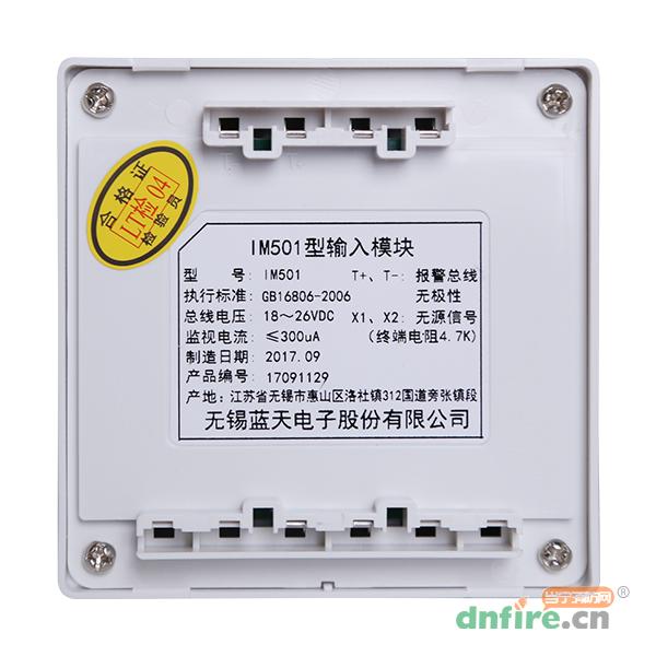 IM501型輸入模塊是專門針對各種使用環(huán)境面設(shè)計的可編碼的信號接入設(shè)備。輸入模塊接收無源開關(guān)量輸入信號經(jīng)處理后通過報警總線與控制器通訊,并顯示其狀態(tài)的相應(yīng)聲、光信號,輸入端短路報監(jiān)管,斷線則報故障。