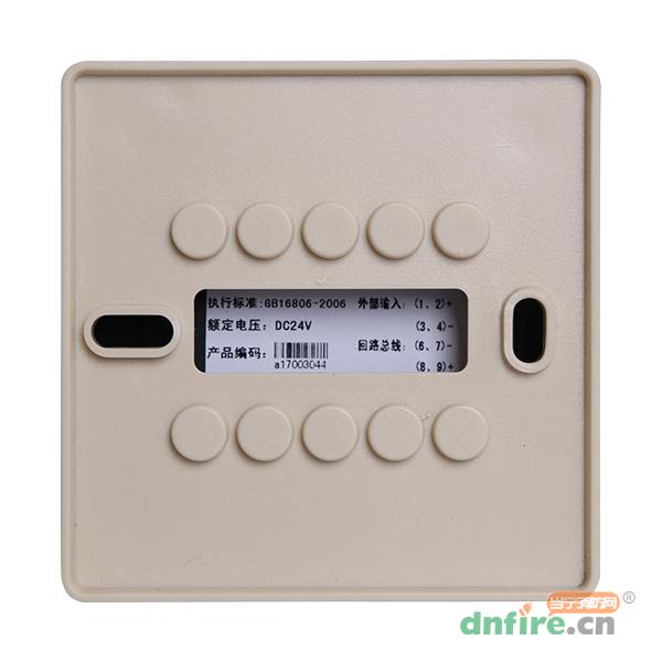 將火災(zāi)報(bào)警器回路總線+、總線-分別接入底座總線+(8或9)、總線-(6或7)端上,注意極性不得接反。輸入1(1或2)、輸入2(3或4)端接收受其監(jiān)視的外部設(shè)備的開關(guān)量觸點(diǎn),無正負(fù)極性。