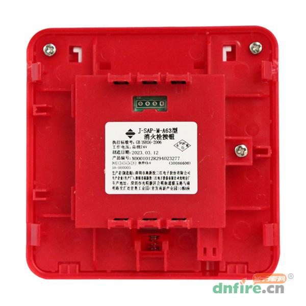 J-SAP-M-A63型消火栓按鈕(以下簡稱消火栓按鈕)通常安裝在消火栓箱內,當人工確認發(fā)生火情后,按下此按鈕,即可啟動消防水泵,同時向消防聯(lián)動控制器發(fā)出報警信號,消防聯(lián)動控制器接收到報警信號,將顯示出按鈕的編碼地址并顯示設備狀態(tài)。正常運行時紅色指示燈閃亮,火警時紅色指示燈常亮,接收到控制器發(fā)來的反饋聯(lián)動命令或接收到回答信號(DC5V~DC30V)時綠色指示燈常亮。