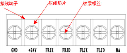 端子+24V,探測器供電電源正極,端子GND,探測器供電電源負(fù)極,端子MA,探測器4-20毫安電流環(huán)輸出。