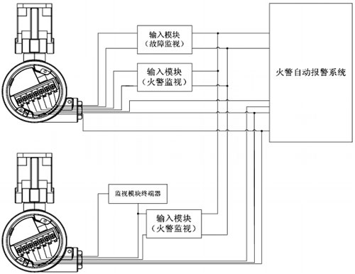 端子FLJD和FLJK,連接探測器故障輸出觸點(diǎn),當(dāng)探測器發(fā)生傳感器故障或供電電源等故障時(shí)觸電斷開,端子FRJD和FRJK,連接探測器火警輸出觸電,當(dāng)探測器報(bào)警時(shí)觸電閉合。