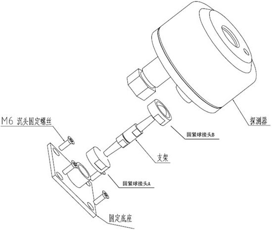探測器支撐架底座采用四個M6螺栓固定,探測器的安裝方式如下: